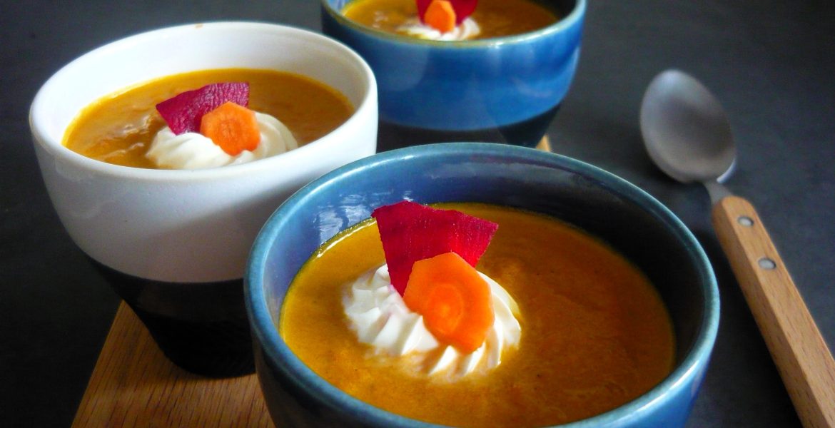 Lorsque j’ai reçu des Editions HACHETTE Cuisine, le très beau livre Cuisine Scandinave, j’ai tout de suite eu envie de tester plusieurs recettes mais comme il fallait bien commencer par une, j’ai choisi celle pour laquelle j’avais tous les ingrédients à la maison, la Soupe aux Carottes à la Betterave, surprenante car bien plus épicée et pleine de peps qu’on pourrait s’y attendre d’une recette venant d’une région peu réputée pour ça.