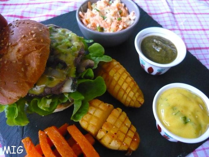 Miam miam miam ! C’est marrant, j’ai aussi préparé un burger samedi soir, et le je disais que je pouvais en partager la recette. Pas tout à fait un franburger, car il y avait des cornichons allemands dedans 🙂