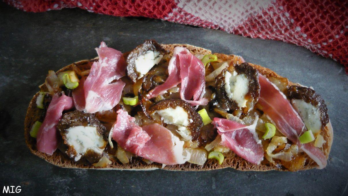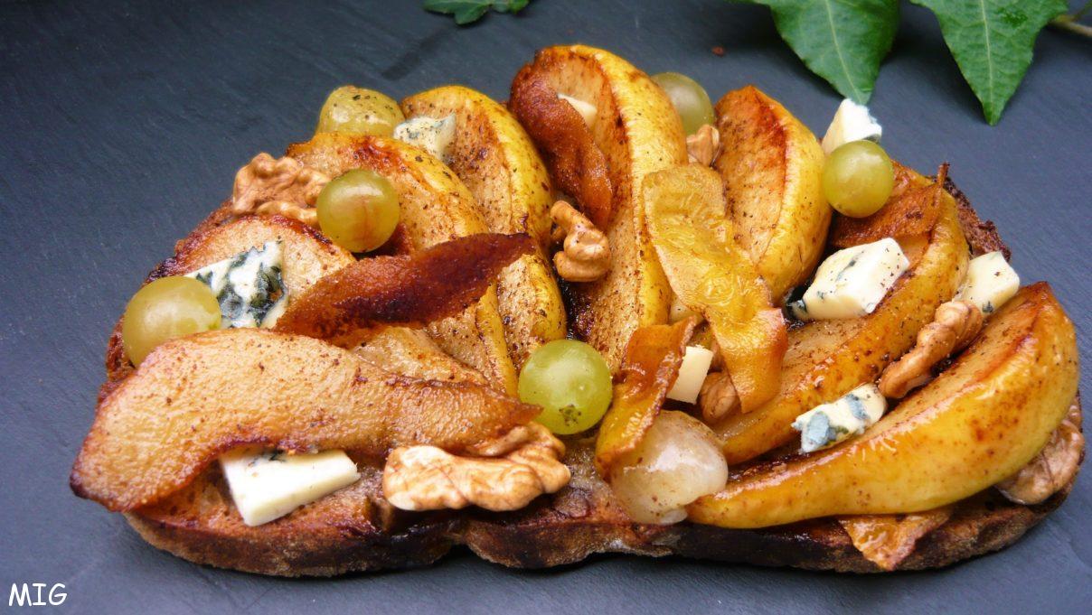 Tartine Poire, Fourme d’Ambert, Raisin, Noix